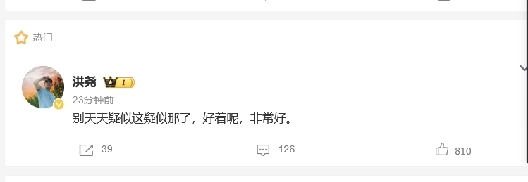 好在,洪尧 25 日发博回应了:“别天天疑似这疑似那了,好着呢,非常好。”这短短一句话,瞬间让网友们吃下了一颗定心丸。原来,这只是一场误会。洪尧在《无限超越班》中曾表示:“我是吴谨言老公,但也是演员”,强调个人职业追求。
