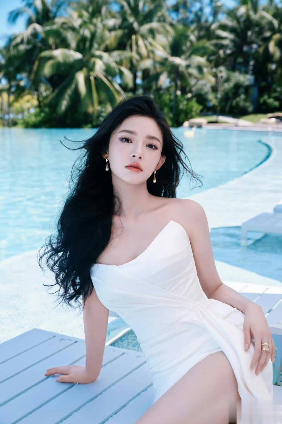 泳池边的白色躺椅上,开叉长裙巧妙展现她修长的腿部线条。体重长期保持在47kg左右的林允,用松弛的坐姿演绎慵懒时尚。镜头捕捉到她眼波流转的瞬间,让人想起她在《彼岸花》中收放自如的表演——从演员到时尚偶像的蜕变,正是源于这份对镜头的掌控力。