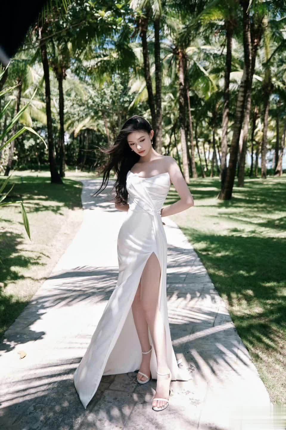 棕榈树夹道的石板小径上,单手叉腰的姿态展现完美腰臀比。阳光透过树叶在她身上跳跃,仿佛为这套极简白裙注入生命。作为95后小花中少有的时尚潜力股,林允用行动证明:真正的时尚不是追逐潮流,而是让服饰成为个人气质的延伸。